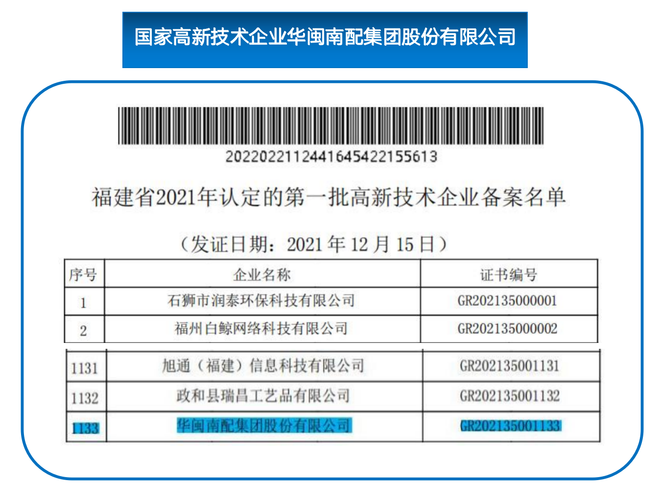 歡迎來到華閩南配集團股份有限公司 (股票代碼:835582)